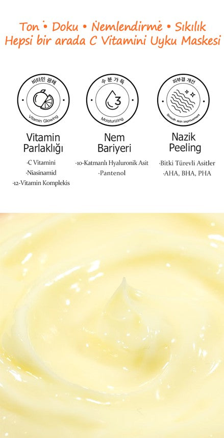 Nightingale’in yenilenen C-TONING Sleeping Mask’u cildiniz uyurken onarır, nemlendirir ve parlaklık kazandırır. Vitamin ağacı meyvesi ekstresi ve üçlü vitamin kompleksi ile formüle edilmiştir. Hafif tahriş edici içerikler nazik ve etkili bileşenlerle değiştirilmiştir.